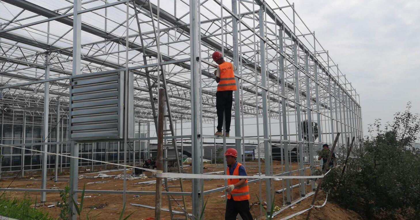 白水縣杜康鎮和園花卉玻璃棚施工現場!